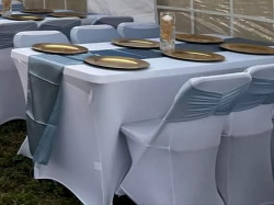All rental items are meticulously cleaned and disinfected after each use. However, please note that they may show signs of normal wear and tear, such as scratches, dents, or stains. For added protection, we recommend using table linens and chair covers.