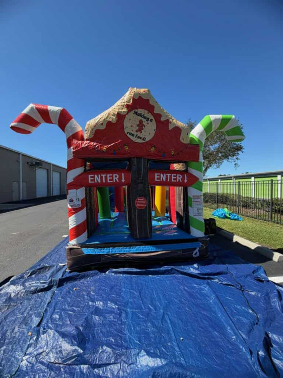 Bounce through a sweet and festive adventure with the Gingerbread Obstacle Course — a colorful, family-friendly inflatable that turns any party into a playful holiday scene. Kids (and kids at heart) will climb, scramble, weave, and zoom through a series of soft obstacles, tunnels, and barriers designed to challenge coordination and keep energy high. Built with safety in mind, the course’s cushioned surfaces and enclosed sides create a secure environment for active play while allowing easy supervision. Its charming gingerbread-themed graphics add a warm, whimsical touch that fits seasonal events, school parties, church functions, or community gatherings. Easy to set up and great for groups, this obstacle course offers lively entertainment that encourages movement, friendly competition, and lasting smiles.